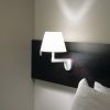 Melampo Wall est une applique murale dotée d’un abat-jour qui peut être orienter en deux positions différentes, offrant ainsi une lumière direct ou diffuse selon son orientation. L’abat-jour pivote à 30° et de chaque côté de l’axe médian.