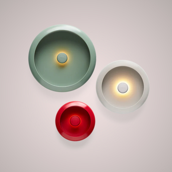 À l’arrière d’Aloha se trouve un tapis de silicone équipé d’un œillet pratique pour l’accrocher au mur, idéale pour ajouter une touche de magie à votre terrasse ou à votre coin lecture préféré sans effort et sans aucune intervention électrique. Le bloc central contenant la lumière DEL est amovible pour permettre sa recharge et il émet une lumière douce et chaleureuse. Ajoutez quelques Olohas supplémentaires et vous pourrez créer un spectacle lumineux amusant sur votre mur.  Doté d’un bouton de gradation, vous pouvez régler l’intensité lumineuse au grès de votre humeur et de vos besoins. Disponible en trois tailles et trois couleurs, Oloha offre une variété  de combinaisons pour transformer votre espace en coin de paradis.